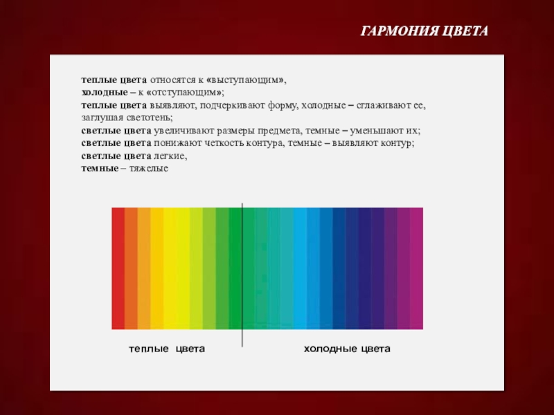 теплые цвета выявляют, подчеркивают форму, холодные – сглаживают ее,