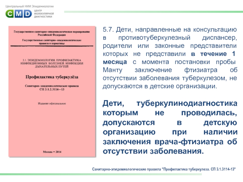 Слайд 81Специфическую профилактику туберкулеза можно проводить только зарегистрированными в Российской Федерации