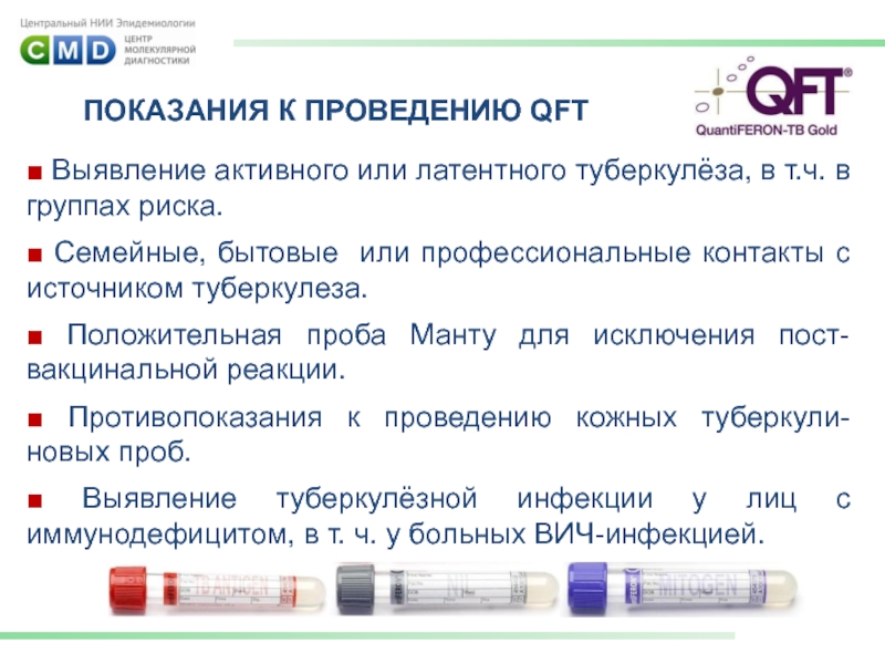■ В СЛУЧАЕ ПОЛОЖИТЕЛЬНОГО РЕЗУЛЬТАТА QFT НЕОБХОДИМА КОНСУЛЬТАЦИЯ ФТИЗИАТРА ДЛЯ ОПРЕДЕЛЕНИЯ ДАЛЬНЕЙШЕЙ ТАКТИКИ.