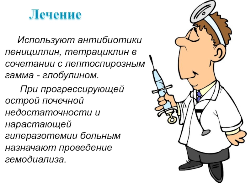 Слайд 55Используют антибиотики пенициллин, тетрациклин в сочетании с лептоспирозным гамма -
