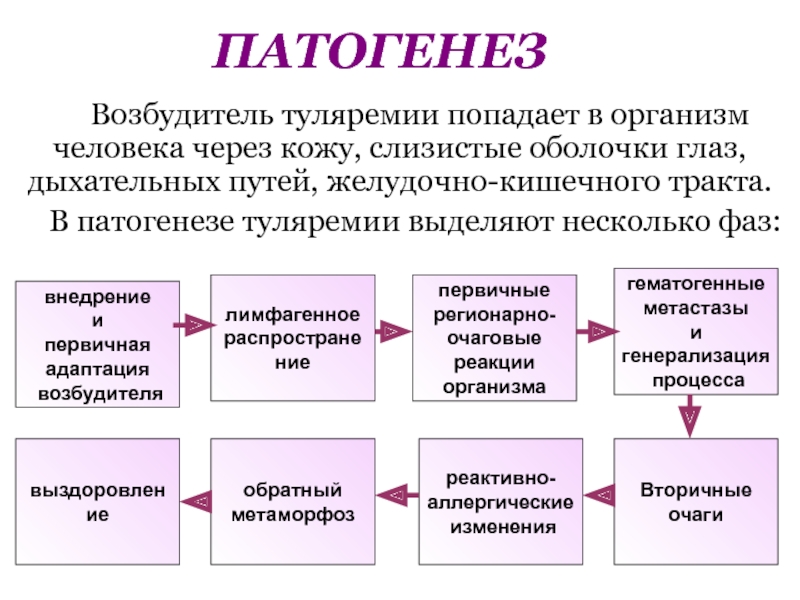 В патогенезе туляремии выделяют несколько фаз: