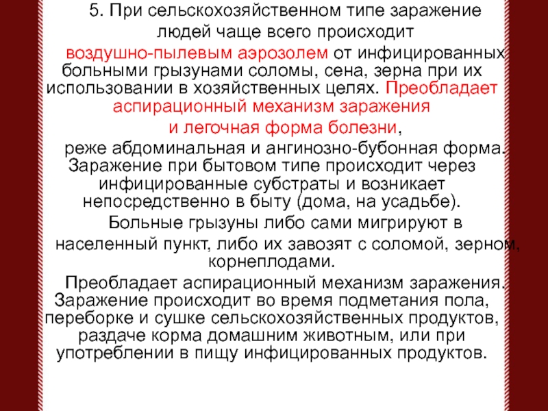 Слайд 165. При сельскохозяйственном типе заражение