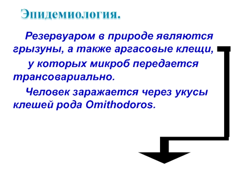 Слайд 61Резервуаром в природе являются грызуны, а также аргасовые клещи,