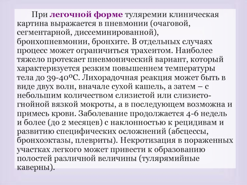 и легочная форма болезни,