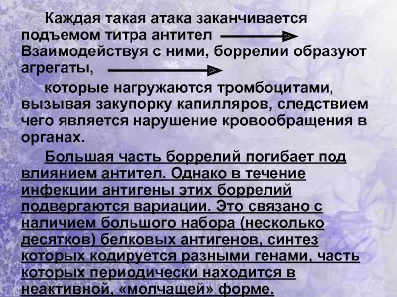 А так как антитела вырабатываются против одного антигена, то новые антигенные варианты боррелии неожиданно появляются и вызывают рецидив заболевания.