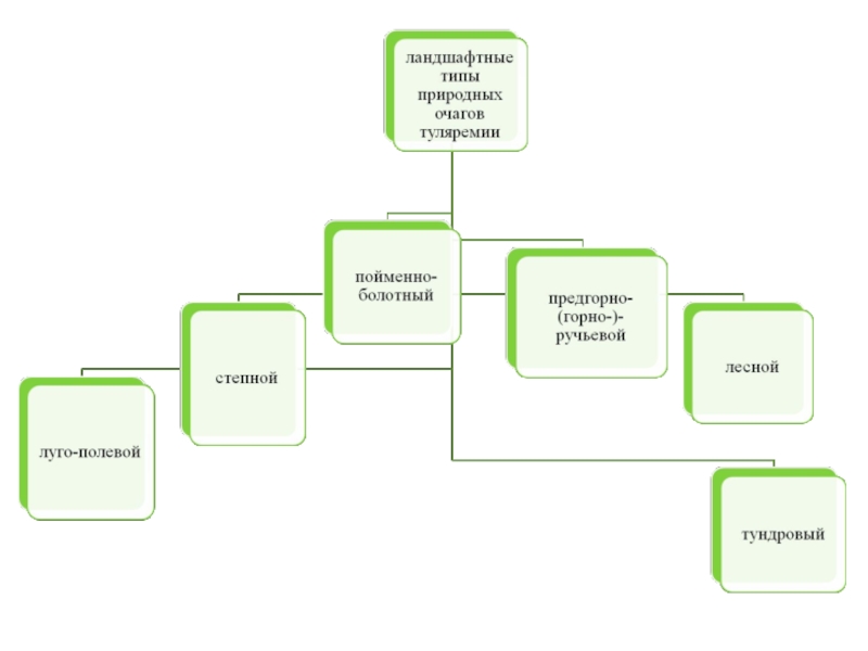В настоящее время на территории РФ выделяют 6 основных ландшафтных типов природных очагов туляремии: