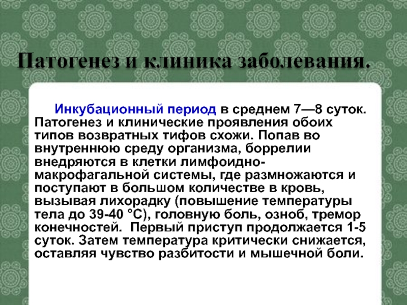 Слайд 64Инкубационный период в среднем 7—8 суток. Патогенез и клинические проявления