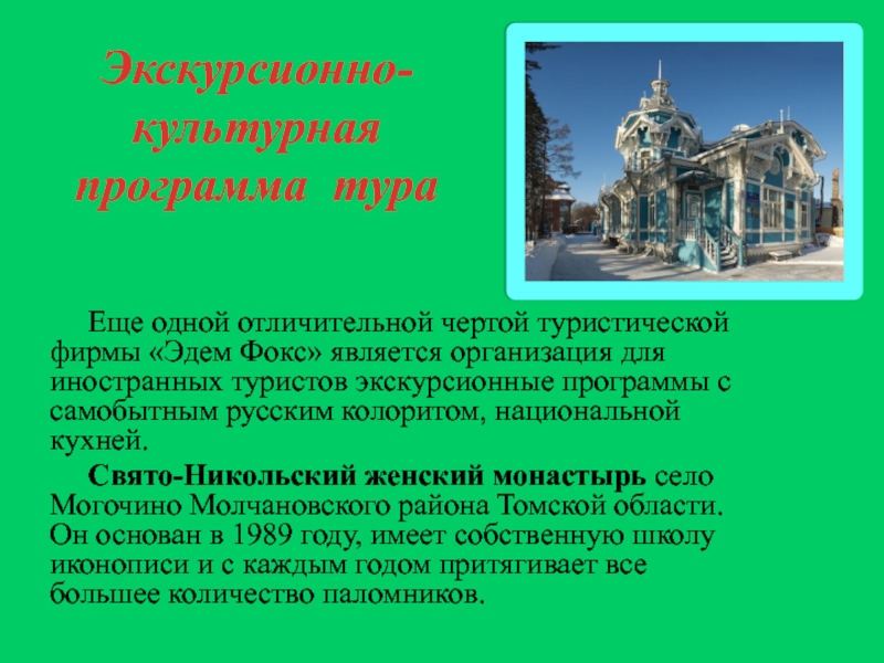 фирмы «Эдем Фокс» является организация для иностранных туристов экскурсионные программы