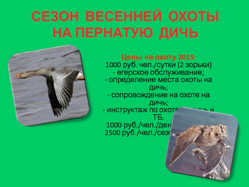 СЕЗОН ВЕСЕННЕЙ ОХОТЫ НА ПЕРНАТУЮ ДИЧЬ