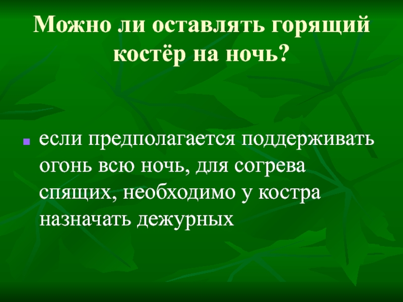 Можно ли оставлять горящий костёр на ночь?