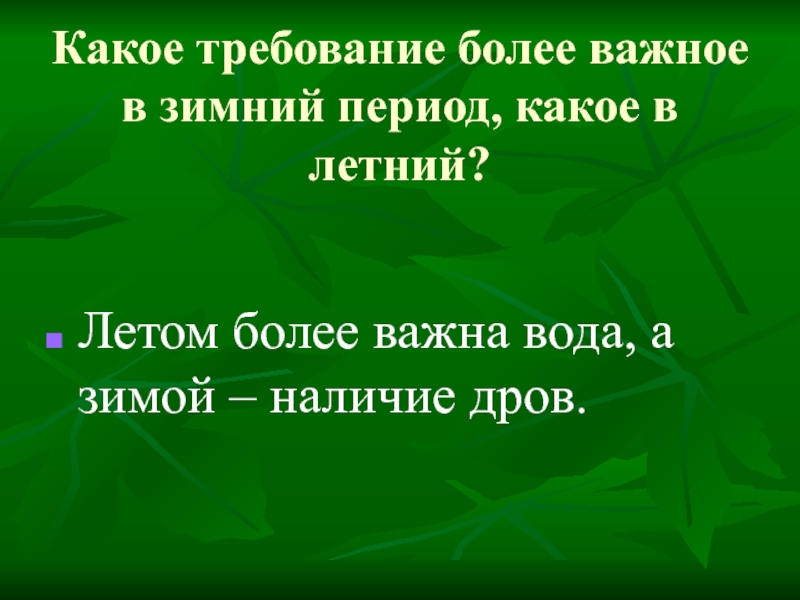 более важна вода, а зимой – наличие дров.