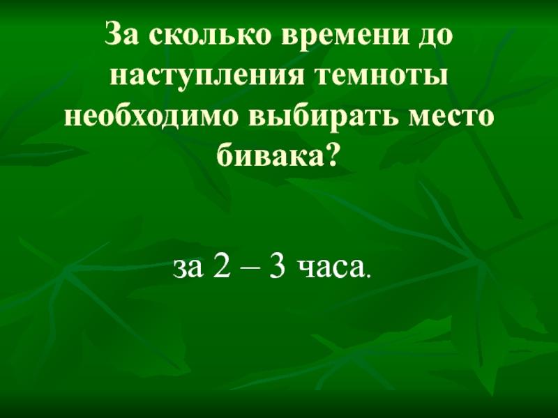 За сколько времени до наступления темноты необходимо выбирать место бивака?