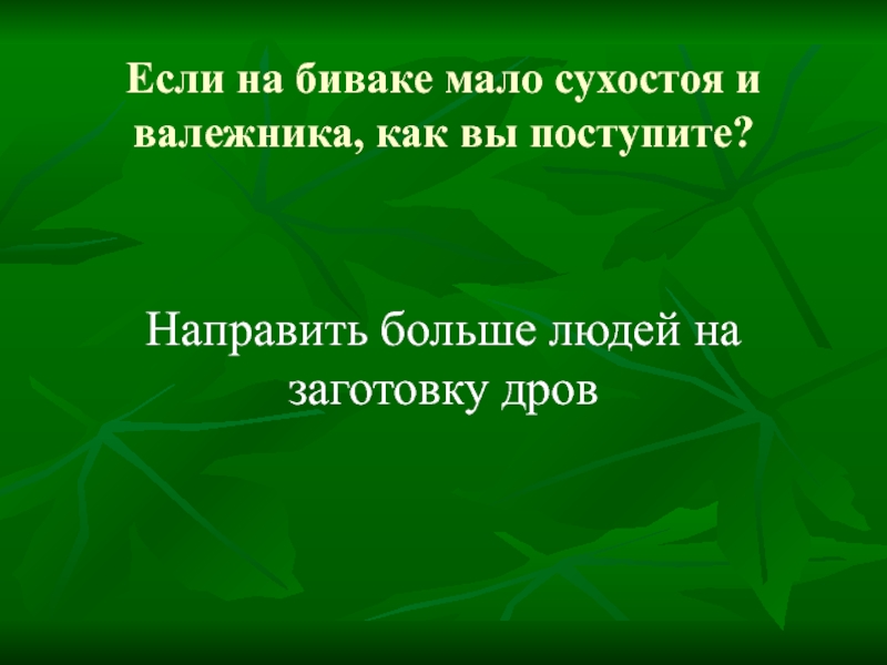 Если на биваке мало сухостоя и валежника, как вы поступите?