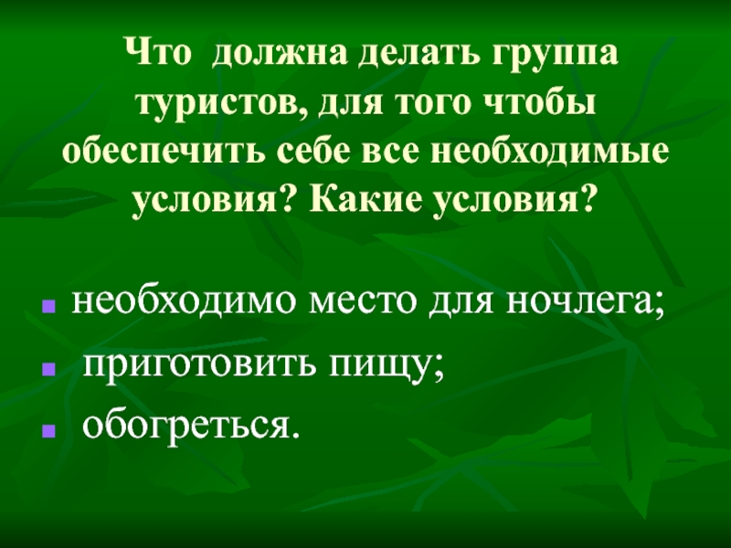 Что должна делать группа туристов, для того чтобы обеспечить