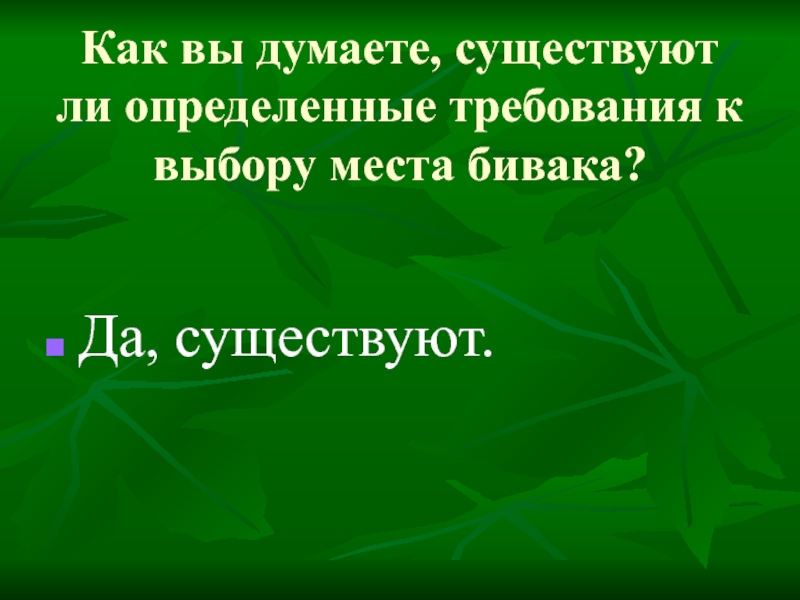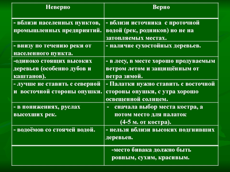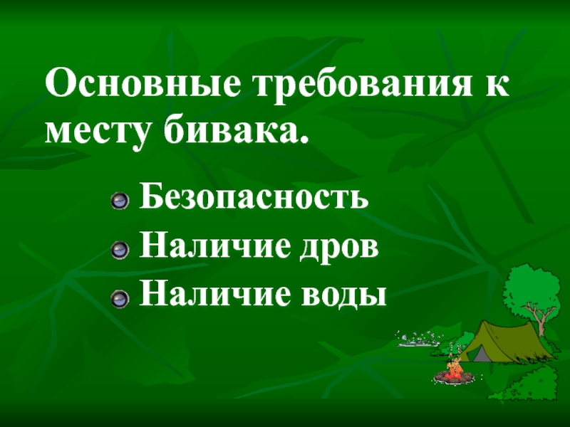 Основные требования к месту бивака.
