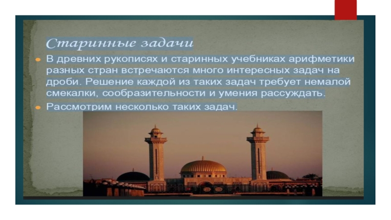 на тему: «Старинные задачи