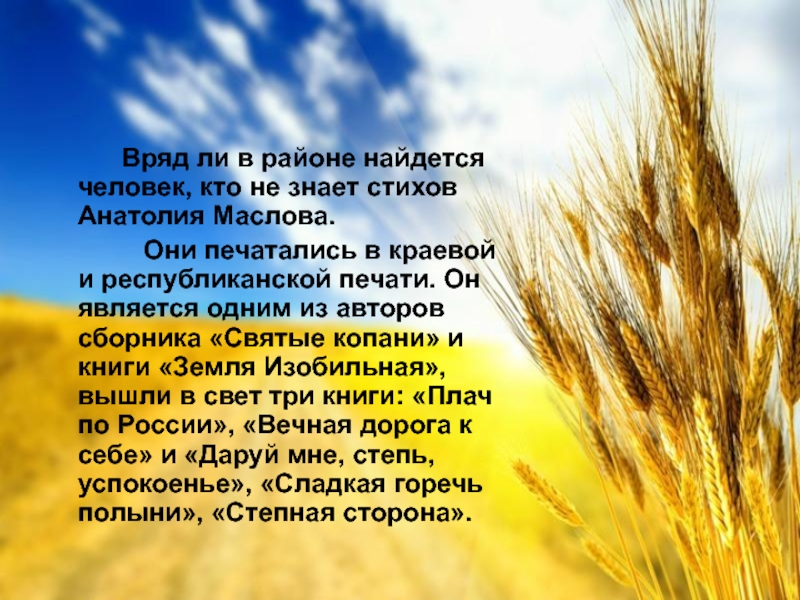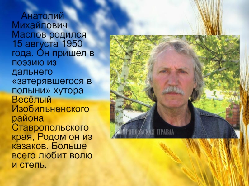 Слайд 5 Анатолий Михайлович Маслов родился 15 августа