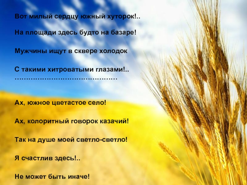 В этих строчках – идущая от полноты сердца сыновняя любовь к отчей земле.