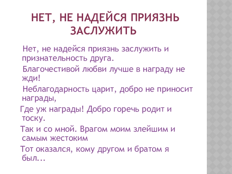 Слайд 17 Нет, не надейся приязнь заслужить