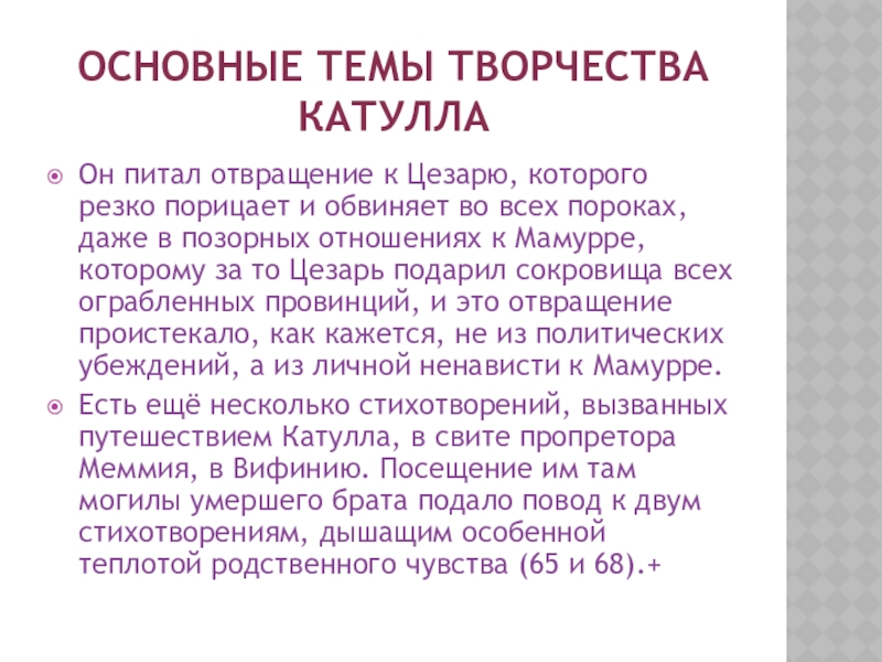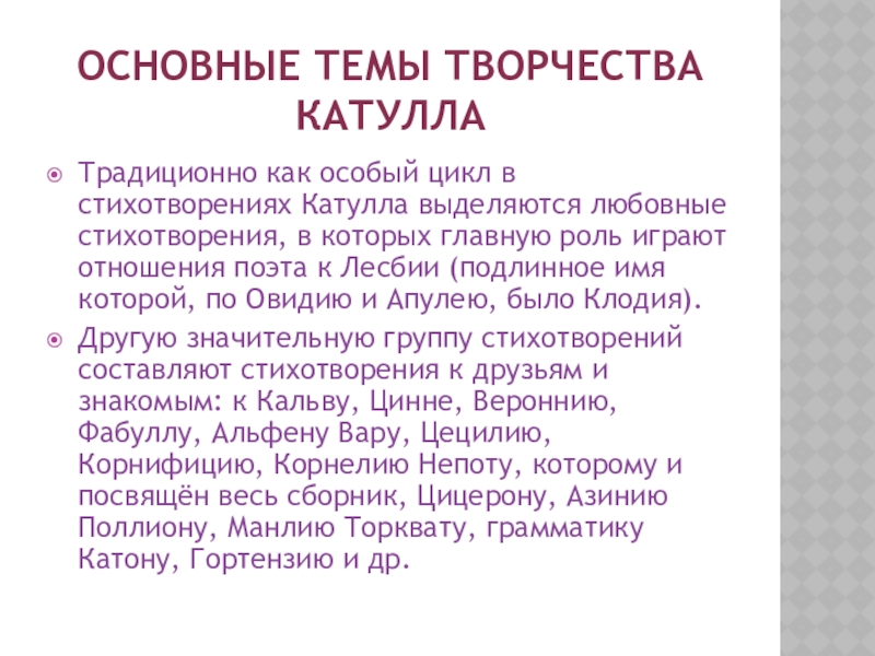 Слайд 10Основные темы творчества Катулла