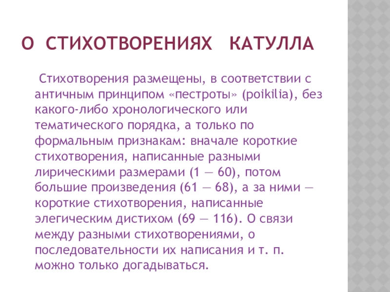 Слайд 8О стихотворениях Катулла