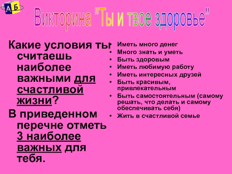 приведенном перечне отметь 3 наиболее важных для тебя.