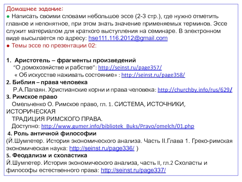 терминов. Эссе служит материалом для краткого выступления на семинаре. В электронном виде высылается по адресу: hse111.116.2012@gmail.com