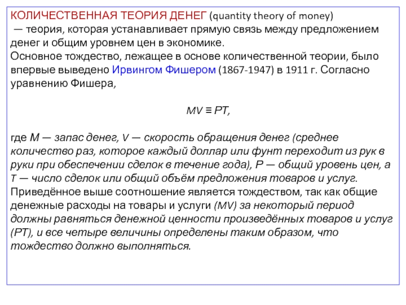 ● Количественная теория денег – Жан Бодэн (и по М.А.Сторчевому)