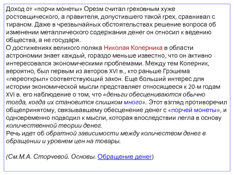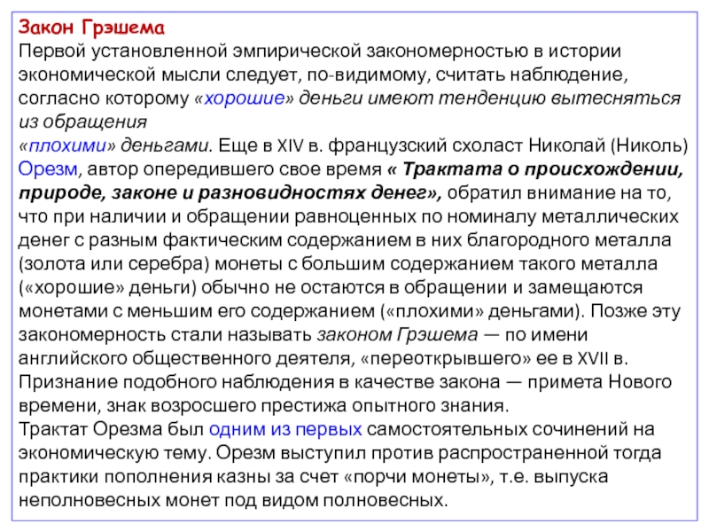● Закон Грэшема и сочинение Н.Орезма, вклад Н.Коперника