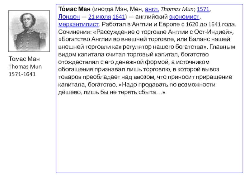 Антуан Монкретьен, Томас Ман, Джон Ло, Дэвид Юм