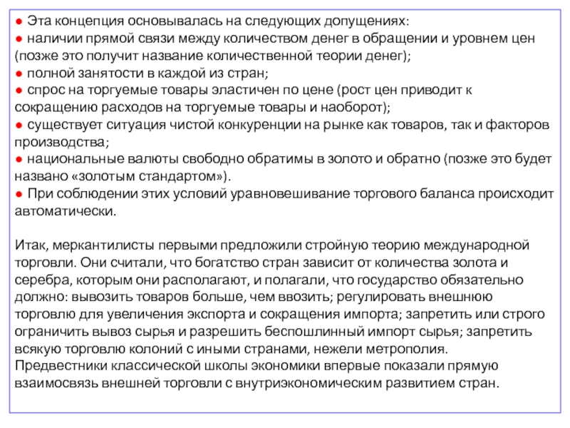 Предвестники классической школы экономики впервые показали прямую взаимосвязь внешней торговли с внутриэкономическим развитием стран.