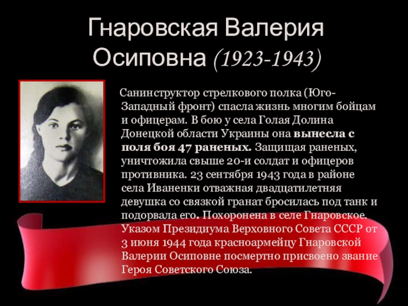 Слайд 14Гнаровская Валерия Осиповна (1923-1943)