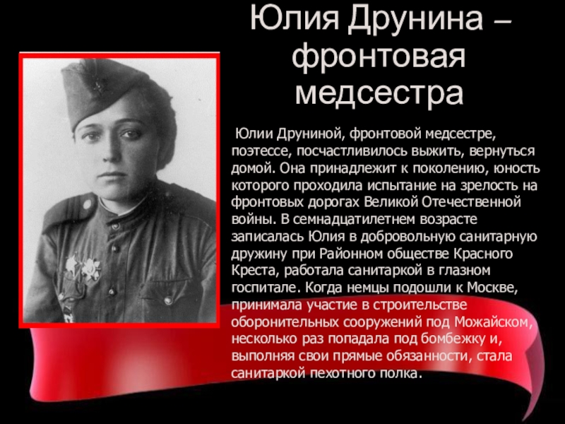 Юлии Друниной, фронтовой медсестре, поэтессе,