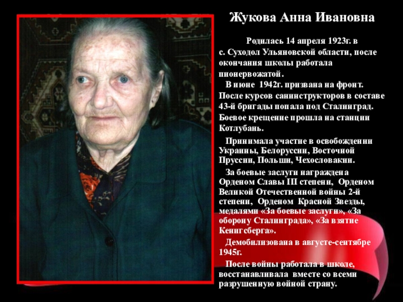Слайд 13 В 1941 записалась добровольцем на фронт в