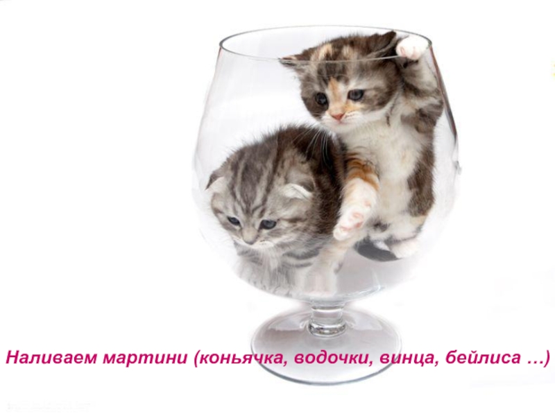 Слайд 13Наливаем мартини (коньячка, водочки, винца, бейлиса …)