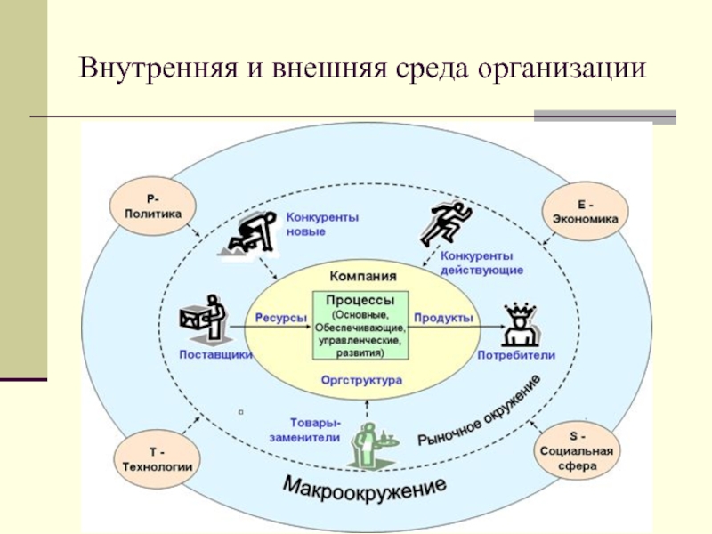 Слайд 7Внутренняя и внешняя среда организации