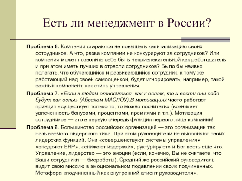 Слайд 23Есть ли менеджмент в России?