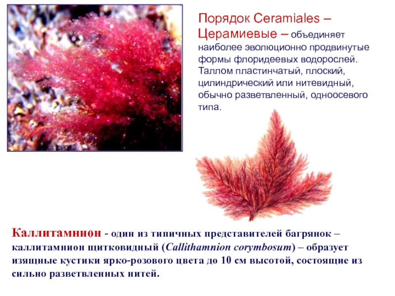 Слайд 12Порядок Ceramiales – Церамиевые – объединяет наиболее эволюционно продвинутые формы