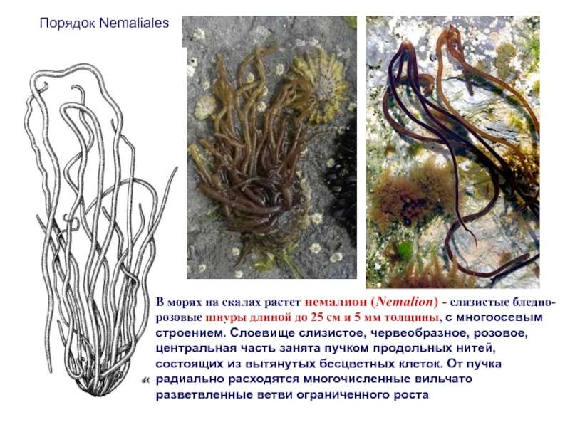 Слайд 7Порядок Nemaliales – Немалиевые – объединяет организмы одноосевого и многоосевого