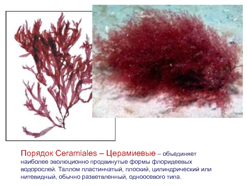 Слайд 13Порядок Ceramiales – Церамиевые – объединяет наиболее эволюционно продвинутые формы