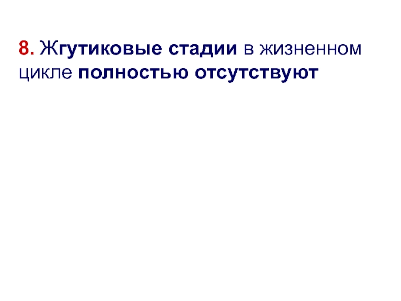 Слайд 208. Жгутиковые стадии в жизненном цикле полностью отсутствуют