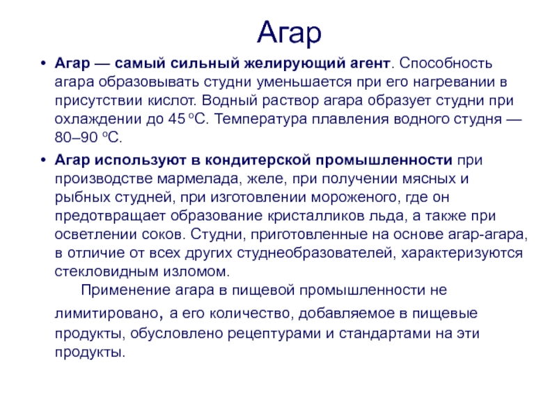Агар — самый сильный желирующий агент. Способность агара образовывать студни