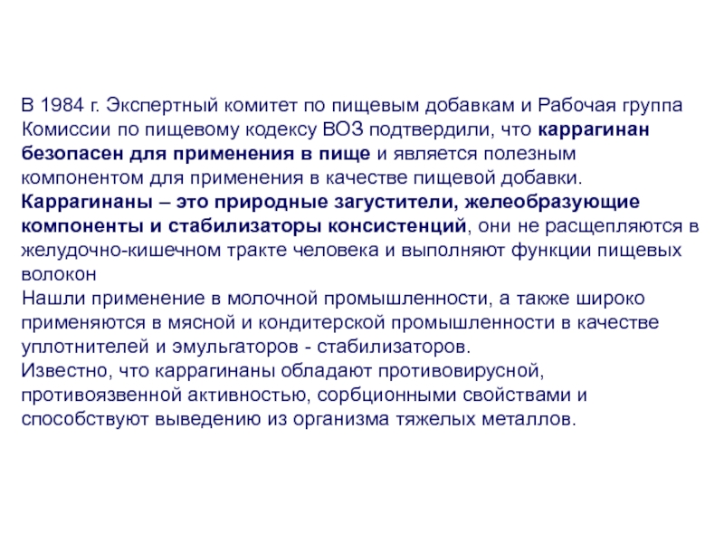 группа Комиссии по пищевому кодексу ВОЗ подтвердили, что каррагинан безопасен