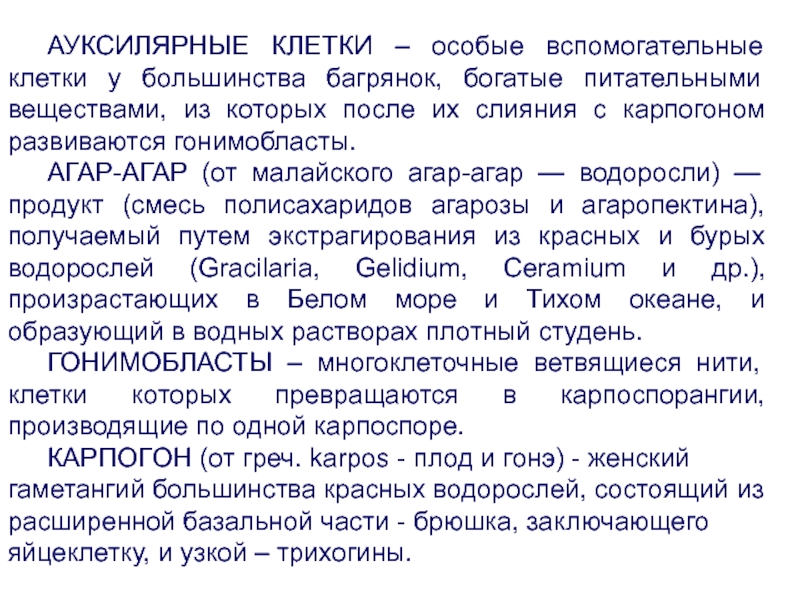 Слайд 70АУКСИЛЯРНЫЕ КЛЕТКИ – особые вспомогательные клетки у большинства багрянок, богатые