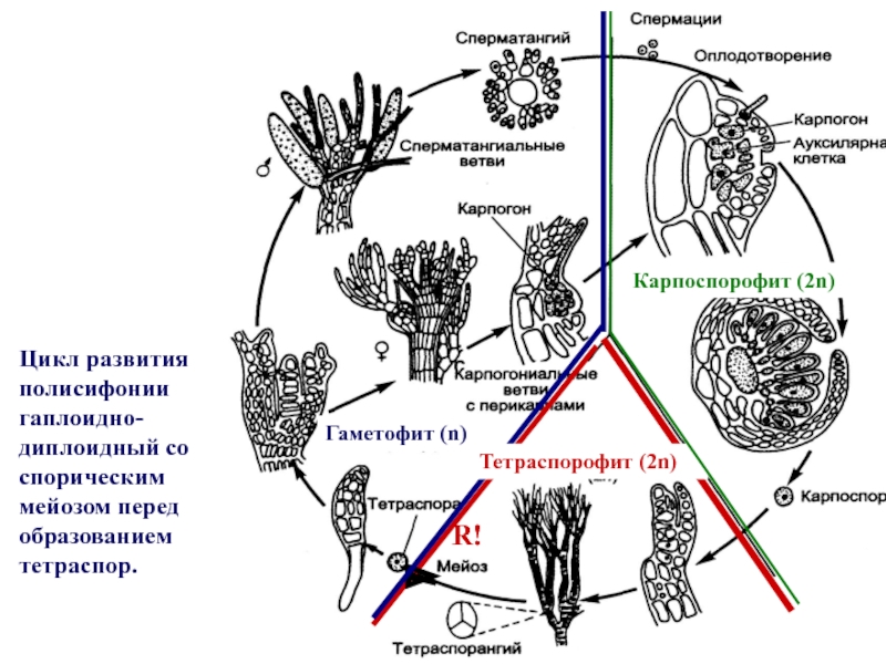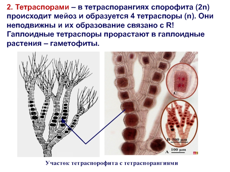 Слайд 72ТЕТРАСПОРОФИТ – диплоидная фаза в цикле развития красных водорослей, взрослые