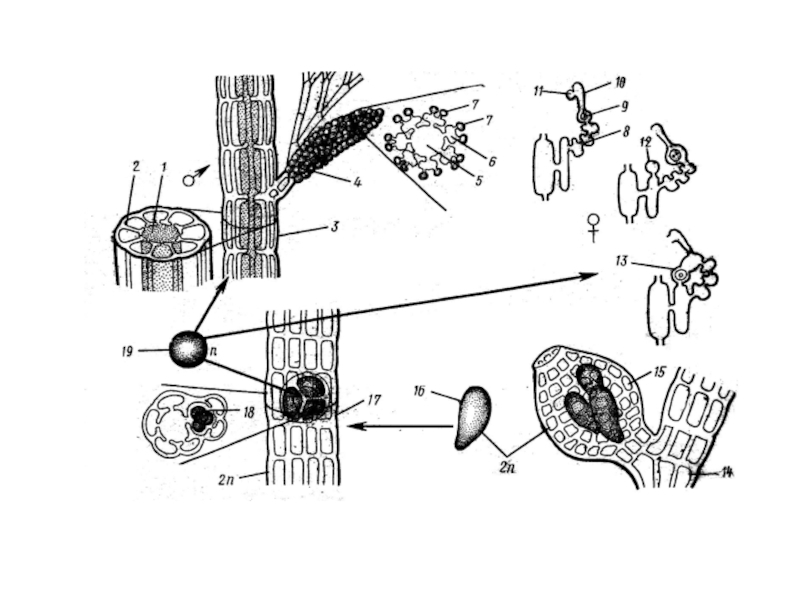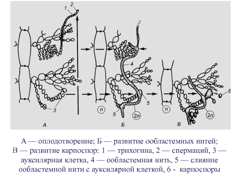 2. Диплоидный карпоспорофит (2n), развивающийся на гаметофите