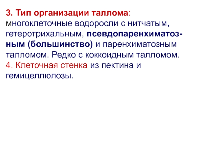 (большинство) и паренхиматозным талломом. Редко с коккоидным талломом.