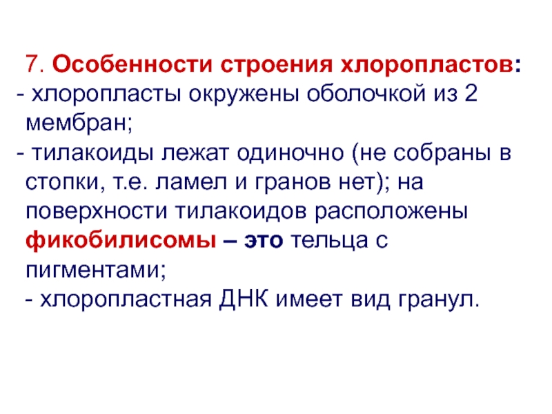 и гранов нет); на поверхности тилакоидов расположены фикобилисомы – это тельца с пигментами;
