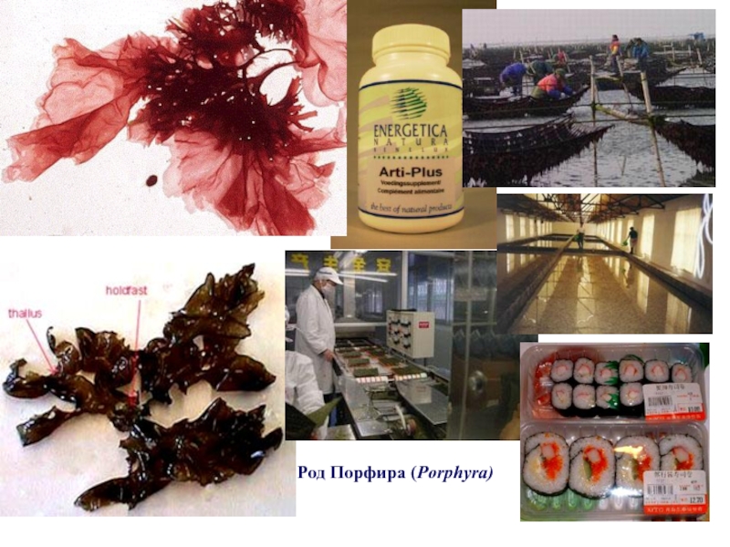 Слайд 4Порфира (Porphyra) – морская водоросль, имеет большое промысловое значение. Таллом