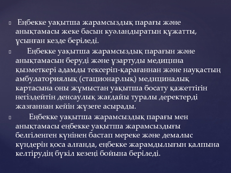 Слайд 1Уақытша еңбекке жарамсыздық.